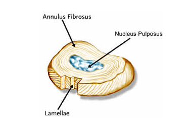 Over time, intervertebral discs can become dried out, compressed or otherwise damaged, due to age, genetics and everyday wear-and-tear. When this happens, the nucleus pulposus may push through the annulus fibrosis. Disc degeneration also may result in bone spurs, also called osteophytes, or spinal stenosis, the narrowing of the area of the spine where the nerve leaves the spine and travels to the rest of the body. If disc or bone material pushes into or impinges on a nearby nerve root and/or the spinal cord, it may result in pain, numbness, weakness, muscle spasms and loss of coordination, both at the site of the damage and elsewhere in the body, since most the nerves for rest of the body (e.g., arms, chest, abdomen and legs) pass from the brain through the neck. These symptoms and the conditions that cause them are collectively referred to as degenerative disc disease, if the condition has become chronic over time. Similar symptoms, however, may occur suddenly if the disc nucleus dislodges acutely and causes nerve root compromise, a condition referred to as a herniated disc.
